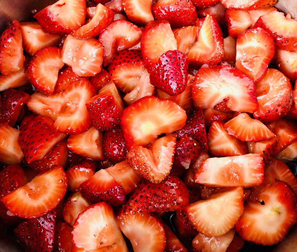 - 1 lb fresh strawberries rinsed, hulled and sliced