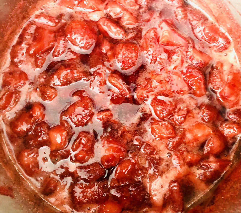 - Once strawberries start to breakdown, reduce heat to low and simmer for 25-27 minutes stirring occasionally. Remove from heat and let cool.