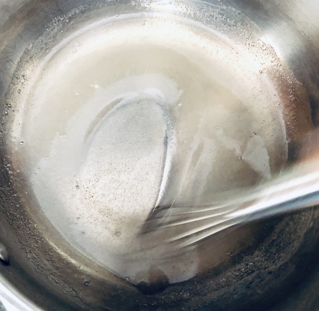 - Second, heat another sauce pan and whisk together water and Agar Agar powder
