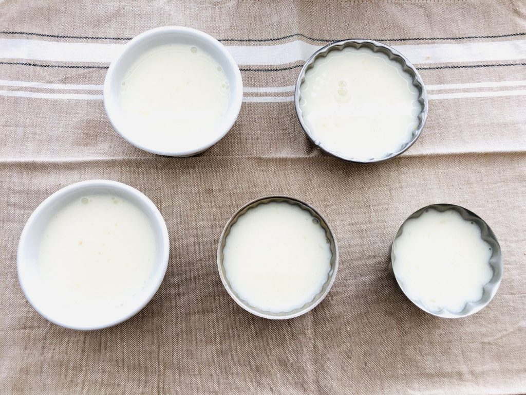 Once the milk mixture is combined with agar agar, transfer the liquid while still warm to individual molds or ramekin cups. Agar Agar sets quickly and blancmange will be firm in about 25-30 minutes.
