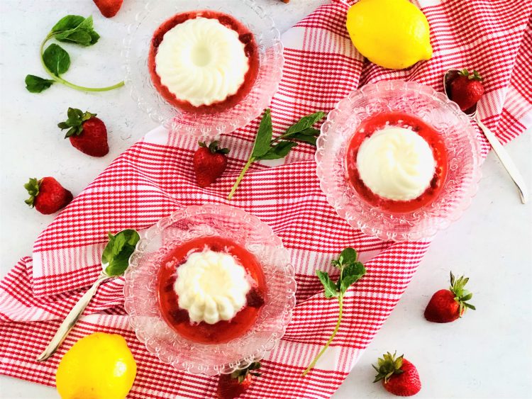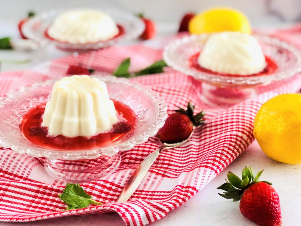 To make your dessert even more delicious and gorgeous, pair your lemon blancmange with strawberry sauce! Lemon and strawberries go so good together and where I live strawberries are available pretty much all year so there’s no reason not to make this. Another great reason to make strawberry sauce is simply because there is nothing more wonderful than smelling sweet strawberries cooking on the stove!