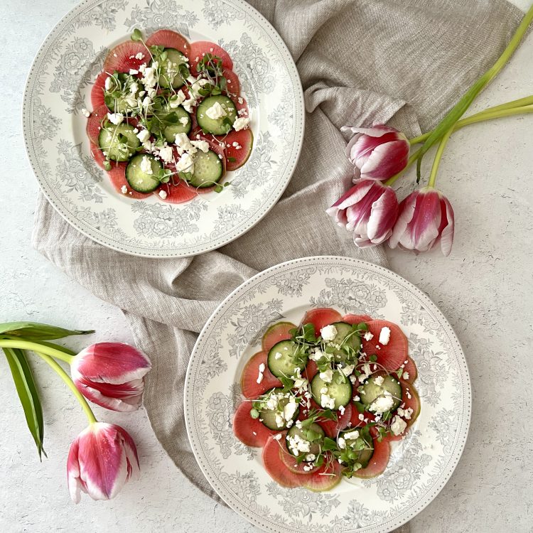 A fresh watermelon radish salad with pickled radishes, cucumbers, feta, and microgreens in a bright lemon vinaigrette that’s simple, colorful, and delicious. Every winter, I look forward to picking up watermelon radishes at my local market and pickling them. Watermelon radishes are in season from fall through winter, and when […]