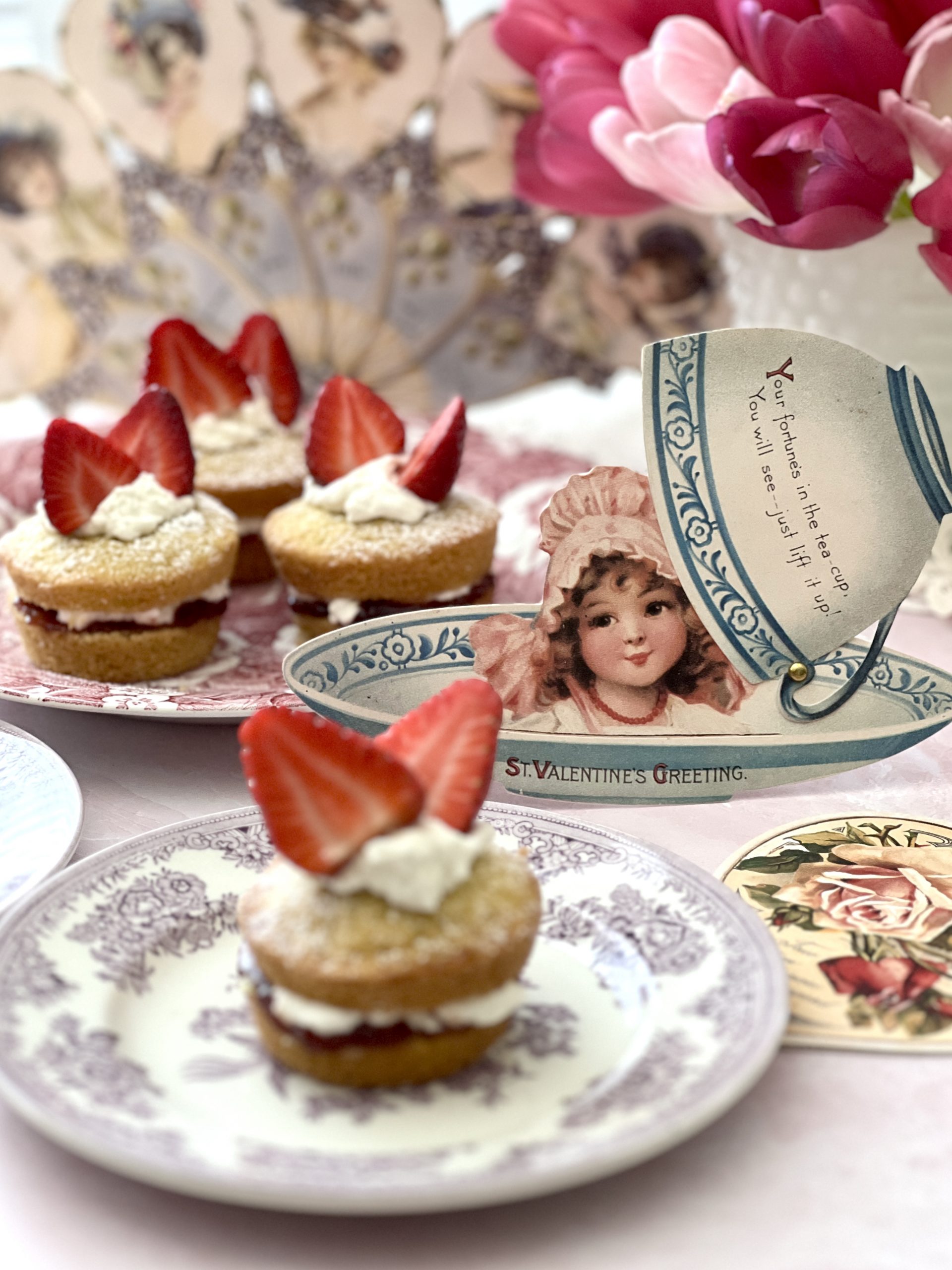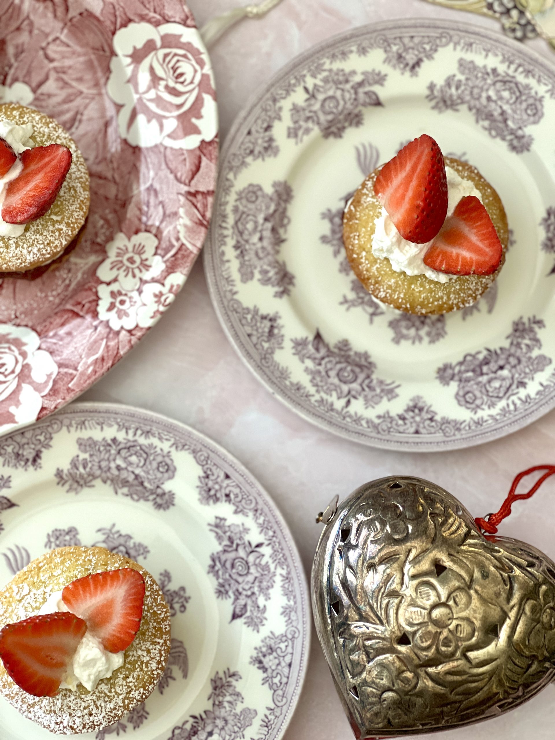 These mini cakes were the star of this year’s Valentine’s tea. My Burleigh Pottery pieces, Blue Asiatic Pheasants, Victoria Chintz, Plum Asiatic Pheasants were perfect for the setting.